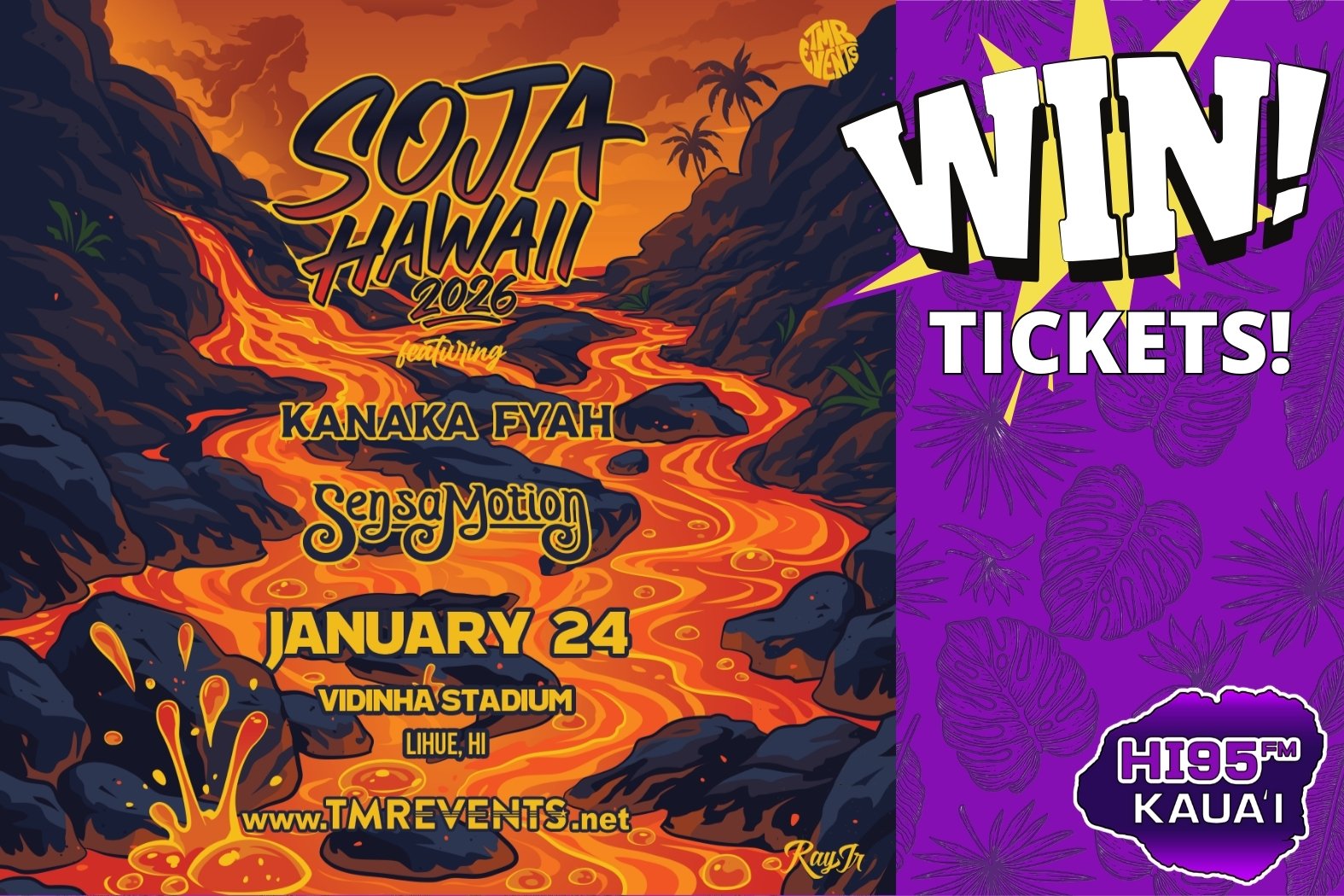 Rules – Entrant must be at least 18+, complete all fields on this form and be a current Kauaʻi resident. One entry per person, per method of entry (call/text/website). Winners will be announced 01/22/2026 and will be contacted by phone and/or email. Regular HI95 Kauai 95.9 FM (KSRF) and Pacific Media Group contest rules, terms and conditions apply (see HI95Kauai.com).